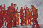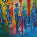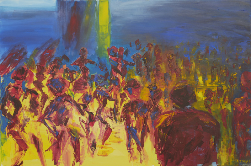 Dein Werk „ohne Titel“ sticht besonders hervor und lädt den Betrachter in eine Welt voller Energie und Bewegung ein. Die Art und Weise, wie Sie die warmen Farbtöne mit kühleren Tönen ausbalancieren, erzeugt eine dynamische Spannung, die tief nachhallt. Es ist faszinierend, wie die Figuren auf der Leinwand zu tanzen scheinen, was beim Publikum ein Gefühl der Verbundenheit und des Feierns hervorruft. Viele Besucher fühlten sich von der lebendigen Essenz des Kunstwerks angezogen und brachten zum Ausdruck, dass es ihnen ein Gefühl von Freude und Gemeinschaft vermittelt.