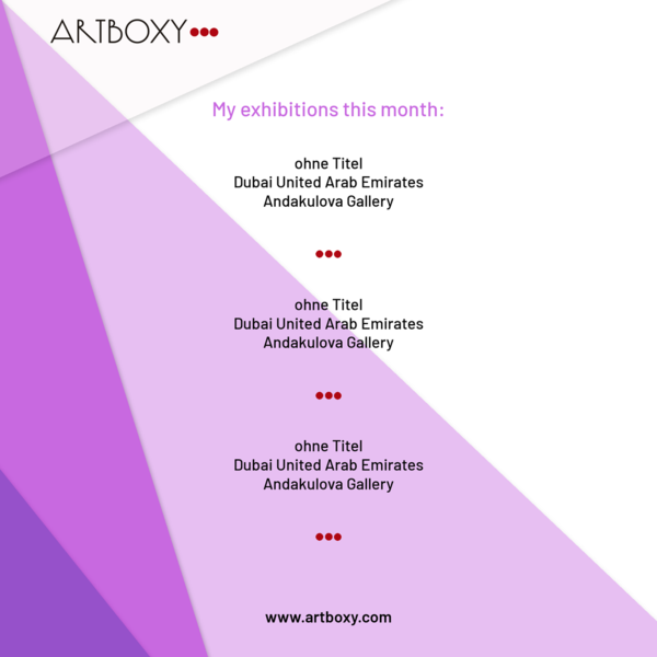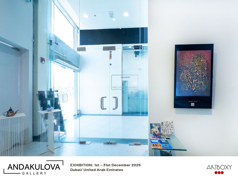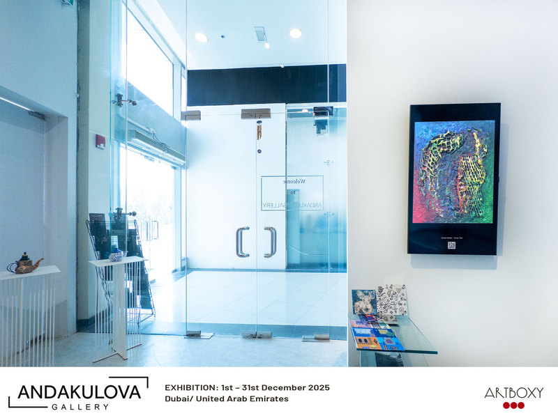 Diese drei Bilder waren im Dezember 2025 mit Unterstützung von ARTBOXY in der Andakulova Gallery in Dubai zu sehen.